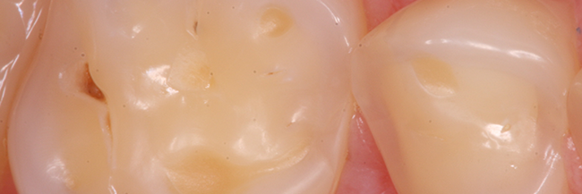 Syreskader viser sig typisk som gennemsigtige og ujævne kanter på fortænderne. Måske oplever du, at små stykker tand knækker af. På kindtænderne ses typisk små gullige fordybninger.